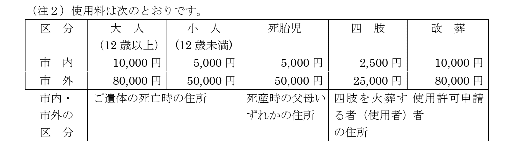 #藤沢聖苑 (火葬場)の使用料: