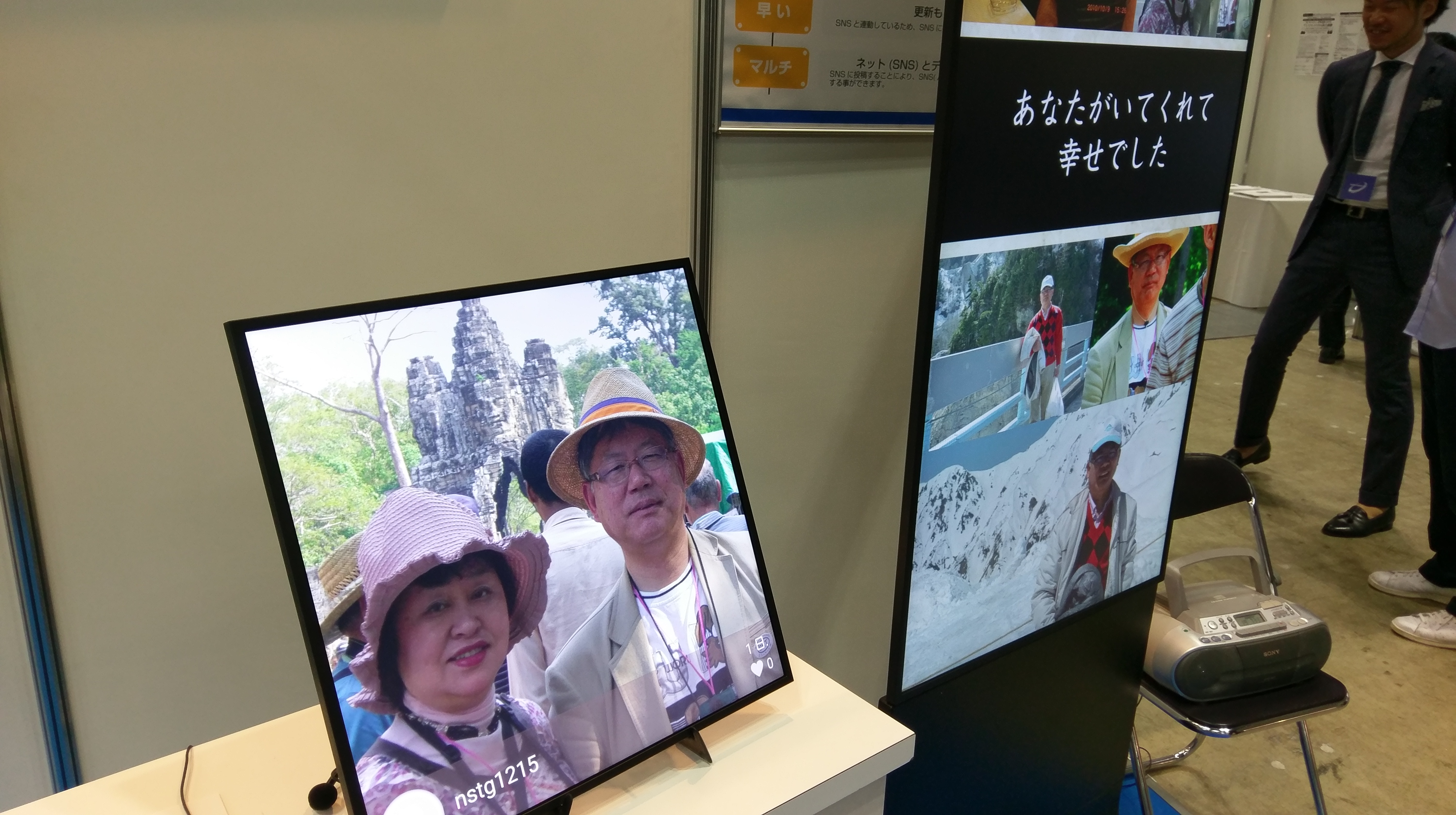 今回のフューネラルビジネスフェアにて株式会社ソアがこの1:1のスクエアモニターを活用してSNS映えしたものを提供していました。