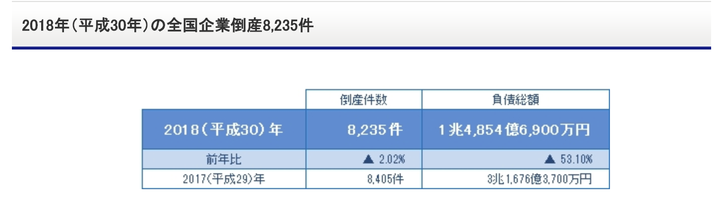 2017年よりも廃業・清算・倒産が減っていることが判明しました。