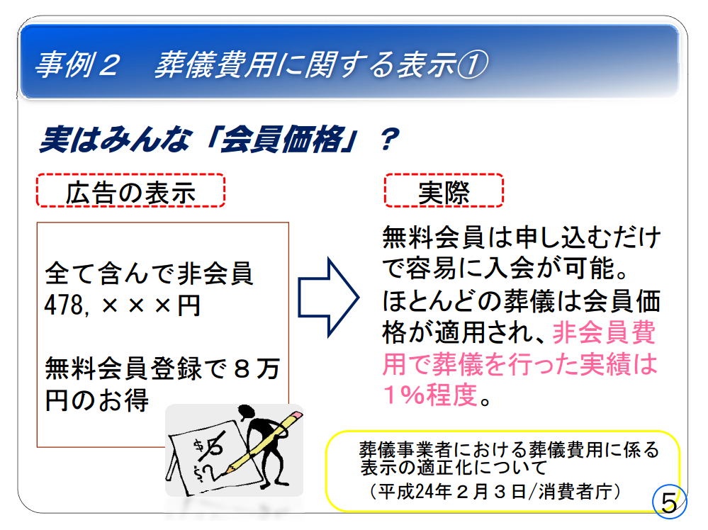 これに関しては、この消費者庁のこれには異議を申し立てたいのは、今、葬儀を依頼する人はほとんどどこかの会員です。